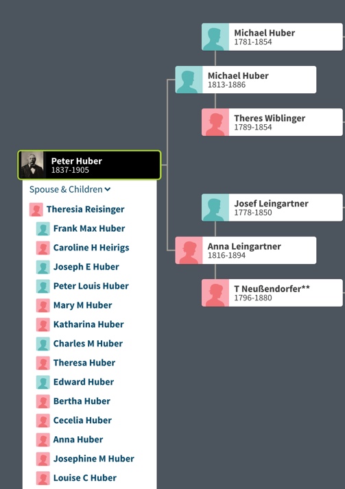 Two years later, Peter and Theresia sailed to America with their son, Frank. Except for Michael, Johann and Josef, all of Peter’s siblings immigrated to America. Unlike her husband, Theresia would never see her family or Germany again.